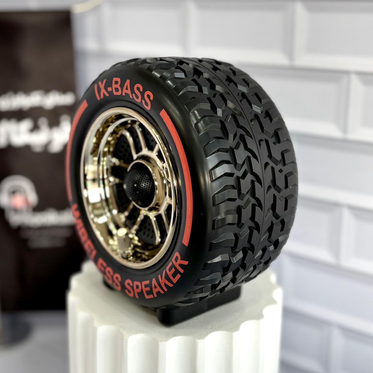 طراحی این اسپیکر بهصورت لاستیک ماشین با آجهای دقیق و واقعی انجام شده که حس قدرت و استحکام را القا میکند. جنس بدنه از پلاستیک مقاوم ساخته شده و برای استفاده طولانیمدت کاملاً مناسب است. توجه به جزئیات در طراحی آجها و نوشتههای دور تایر، این مدل را به انتخابی جذاب برای ماشینبازان و علاقهمندان به طراحی خاص تبدیل کرده است.