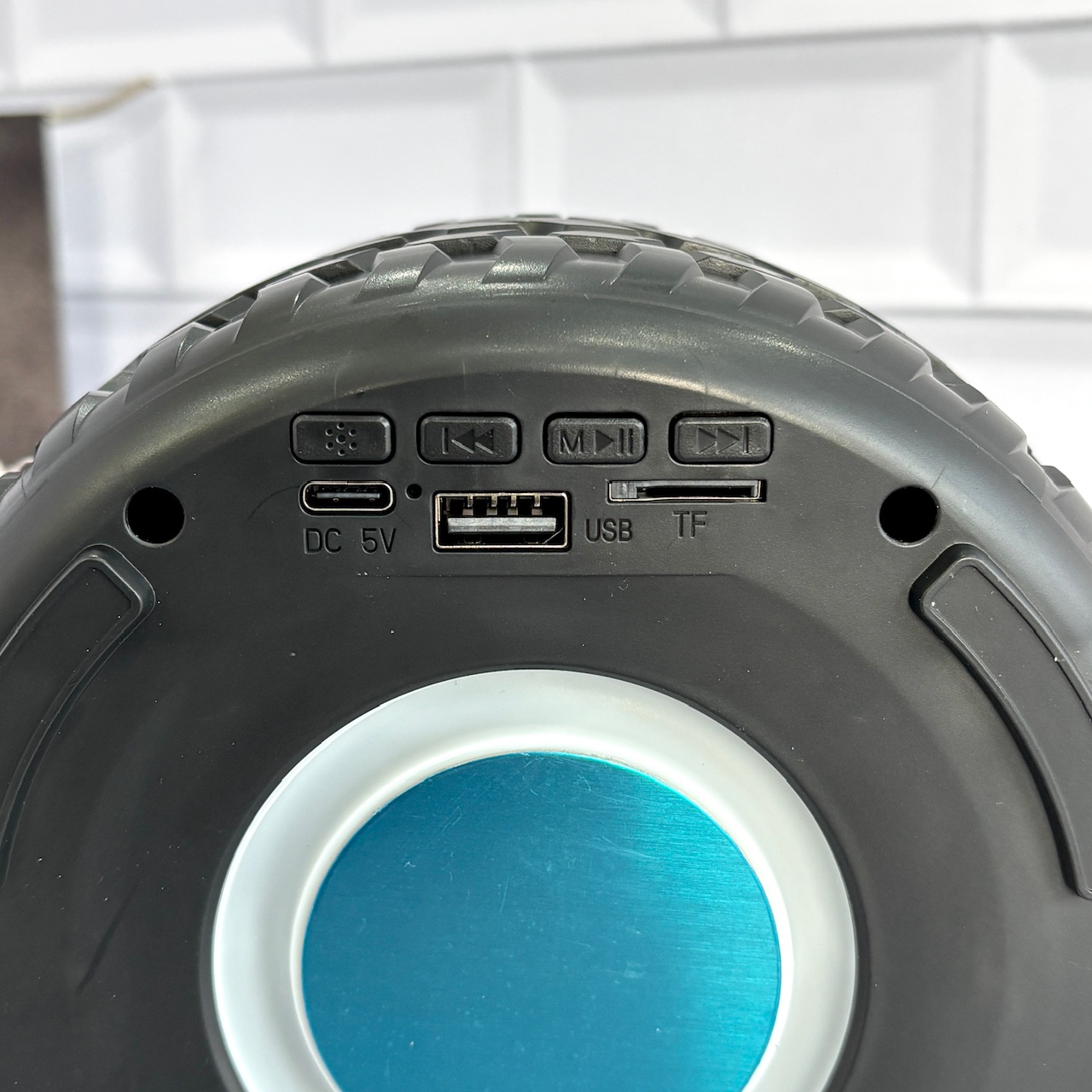 یکی از جذابترین بخشهای طراحی، کنترل چرخشی دور تایر است؛ روشن و خاموش کردن اسپیکر و همچنین کم و زیاد کردن صدا تنها با چرخاندن این بخش انجام میشود که حس استفاده از یک محصول متفاوت و خاص را منتقل میکند.
