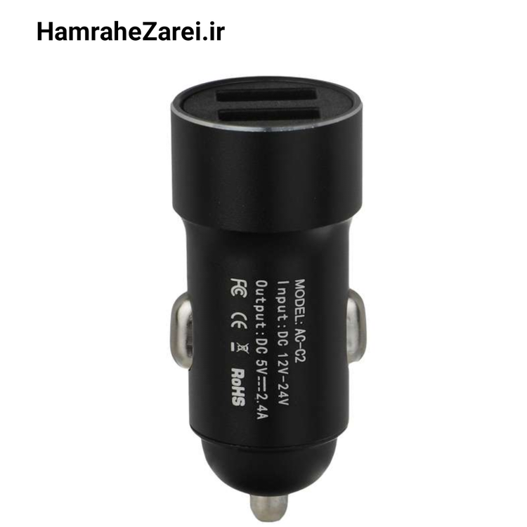 شارژر فندکی آکو ✅مخصوص شارژ کردن گوشی در خودرو ✅دارای ۲ خروجی USB ✅توان خروجی 2.4A